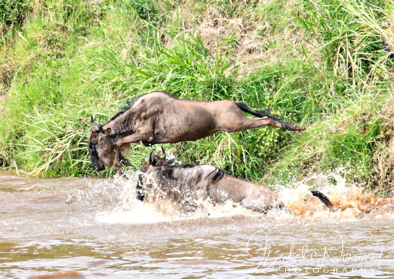 - Gnu Migration quert den Mara Fluss auf dem Weg nach Süden